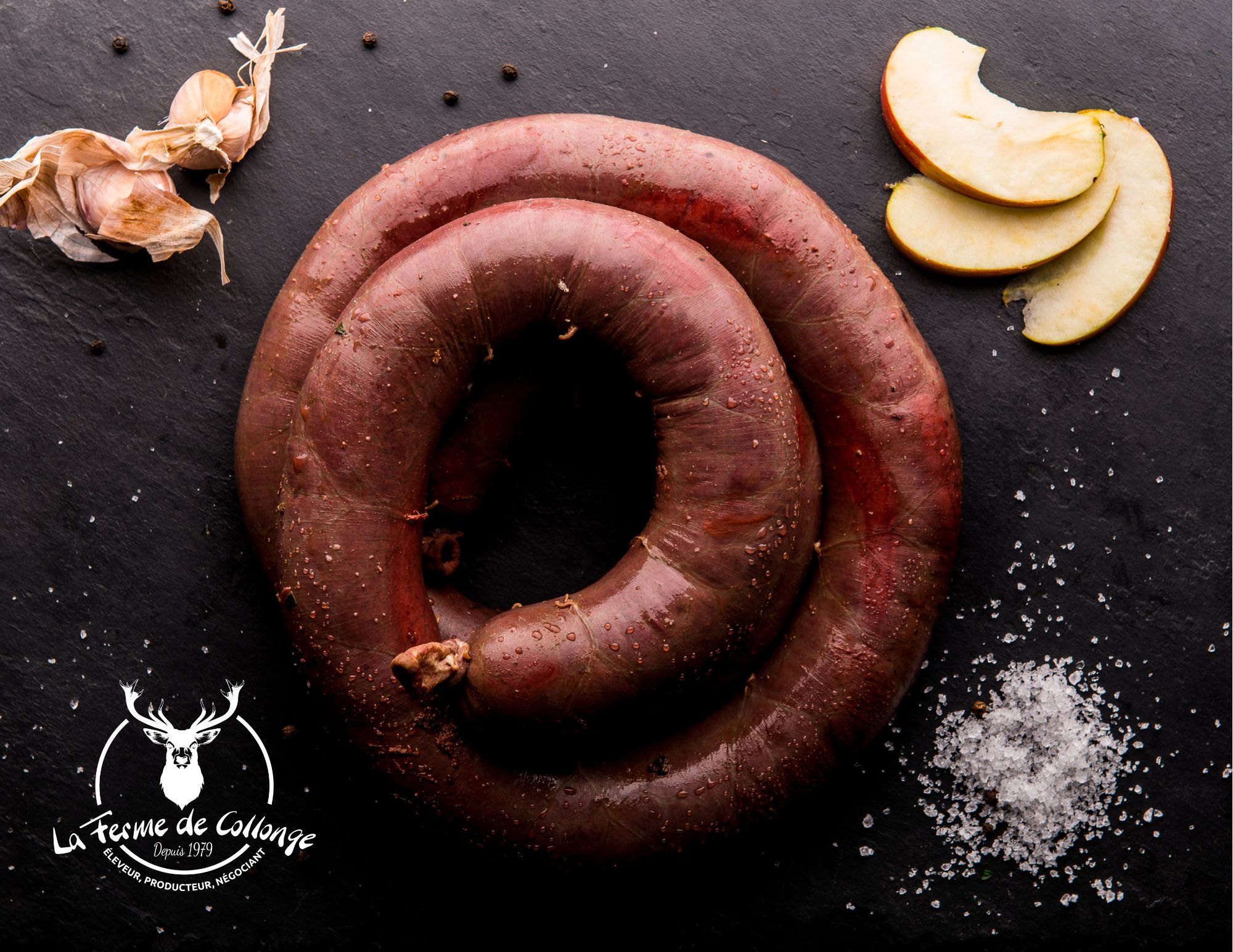Boudin artisanal – Préparé à l’ancienne avec sang, oignons et épices, relevé de lait, crème et œufs pour une saveur authentique du terroir.