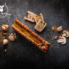 Le Rosette est embossé dans un boyau naturel de porc, très long, ce qui induit sa taille importante. Une délicieuse combinaison de viande et d’épices en font une spécialité incontournable de la région Lyonnaise. Ce boyau plus gros et plus gras, joue un rôle important dans le processus de maturation et de développement des saveurs pendant le séchage. Toute notre charcuterie est fabriquée sans sel nitrité dans nos ateliers de Francheleins dans l’Ain.